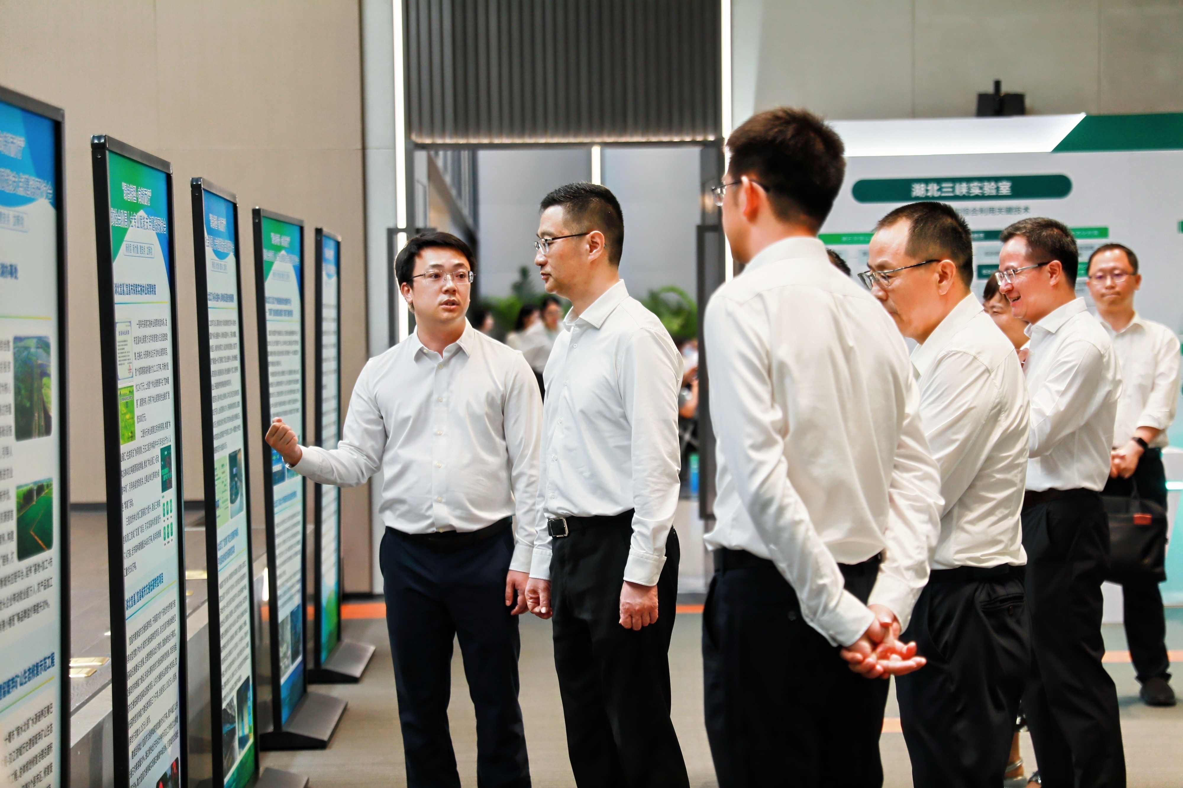 会议期间,各位领导与嘉宾一同参观了中碳登三楼展厅和绿色低碳典型案例,深度了解全国碳市场的建设成效和绿色转型实践探索成果。